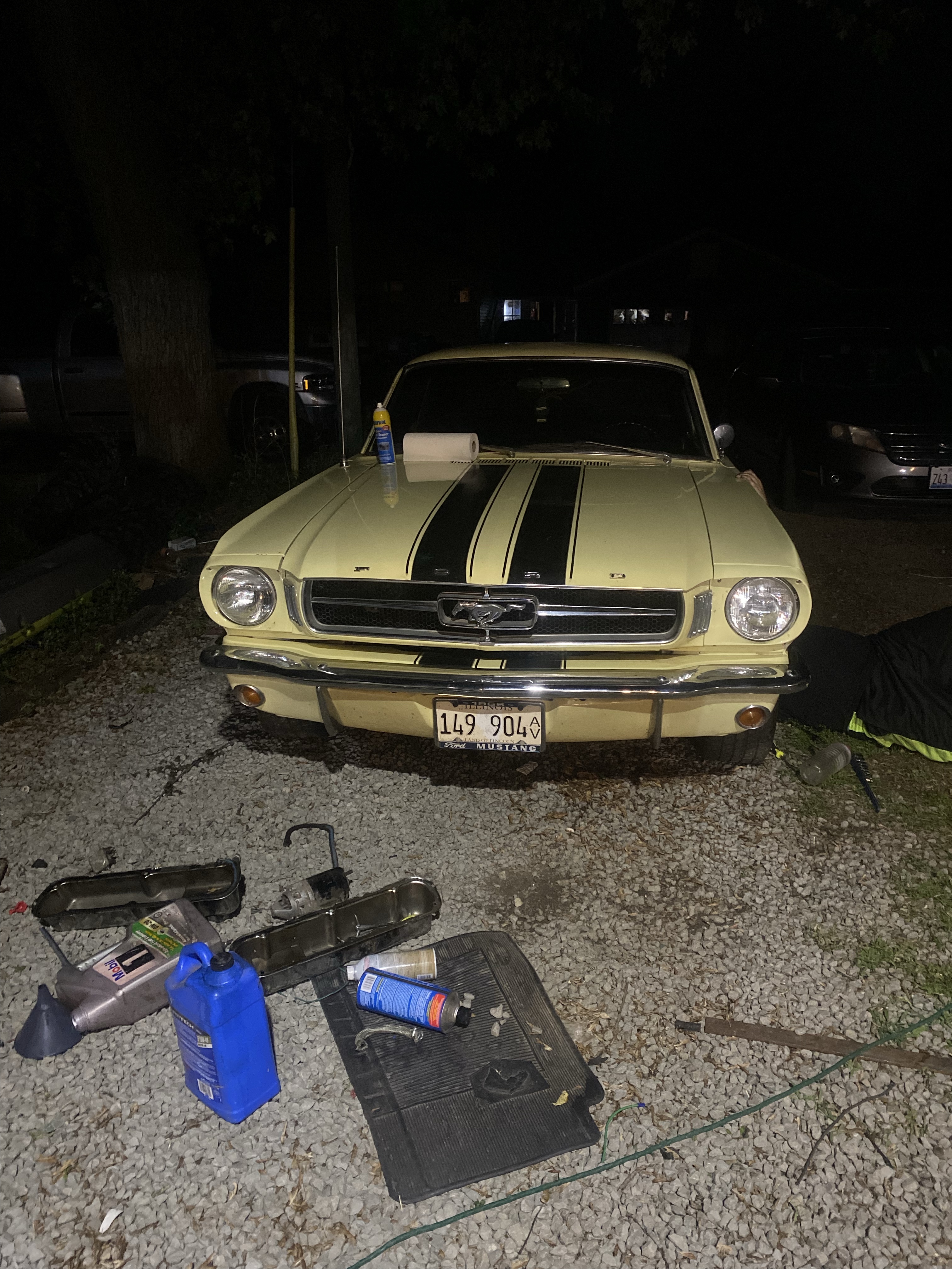 The Moustang is a 1965 Ford Mustang that has a whole lotta sentimental value. Shelby and his dad did a full restore on it in 2004 and it had been stored in a barn ever since. In 2017 we brought it home with intentions of driving it in a parade only to have it quit running the day of the parade. Back into the barn it went until June of 2021 when we trailered it back home to work on it.