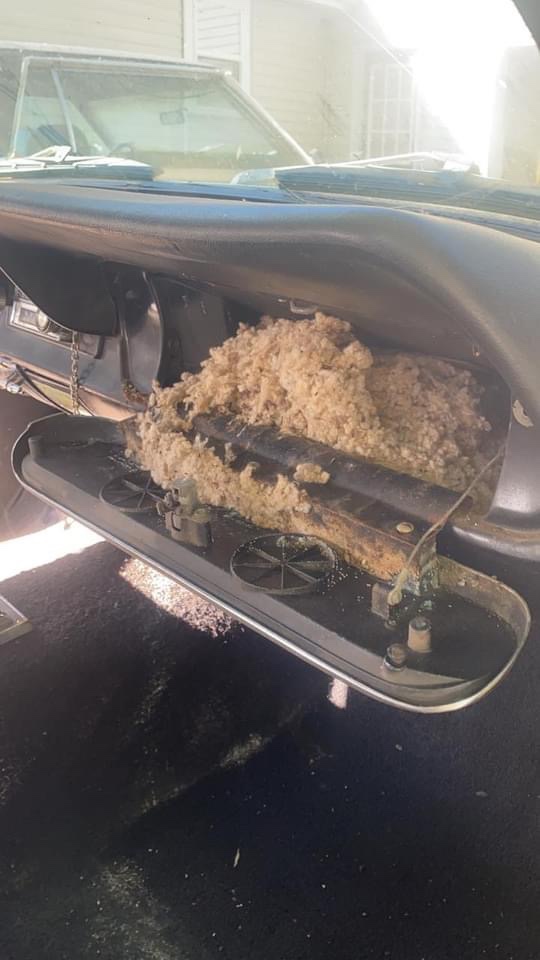 When we opened the doors we found that mice had completely infested the mustang chewing holes in the headliner and building mice nests everywhere they could find. We have tried everything to get the smell of mouse out it but so far no luck. Our plan is to pull out the entire interior replace the headliner, deep clean the carpet and repair and clean any upholstery that needs it.