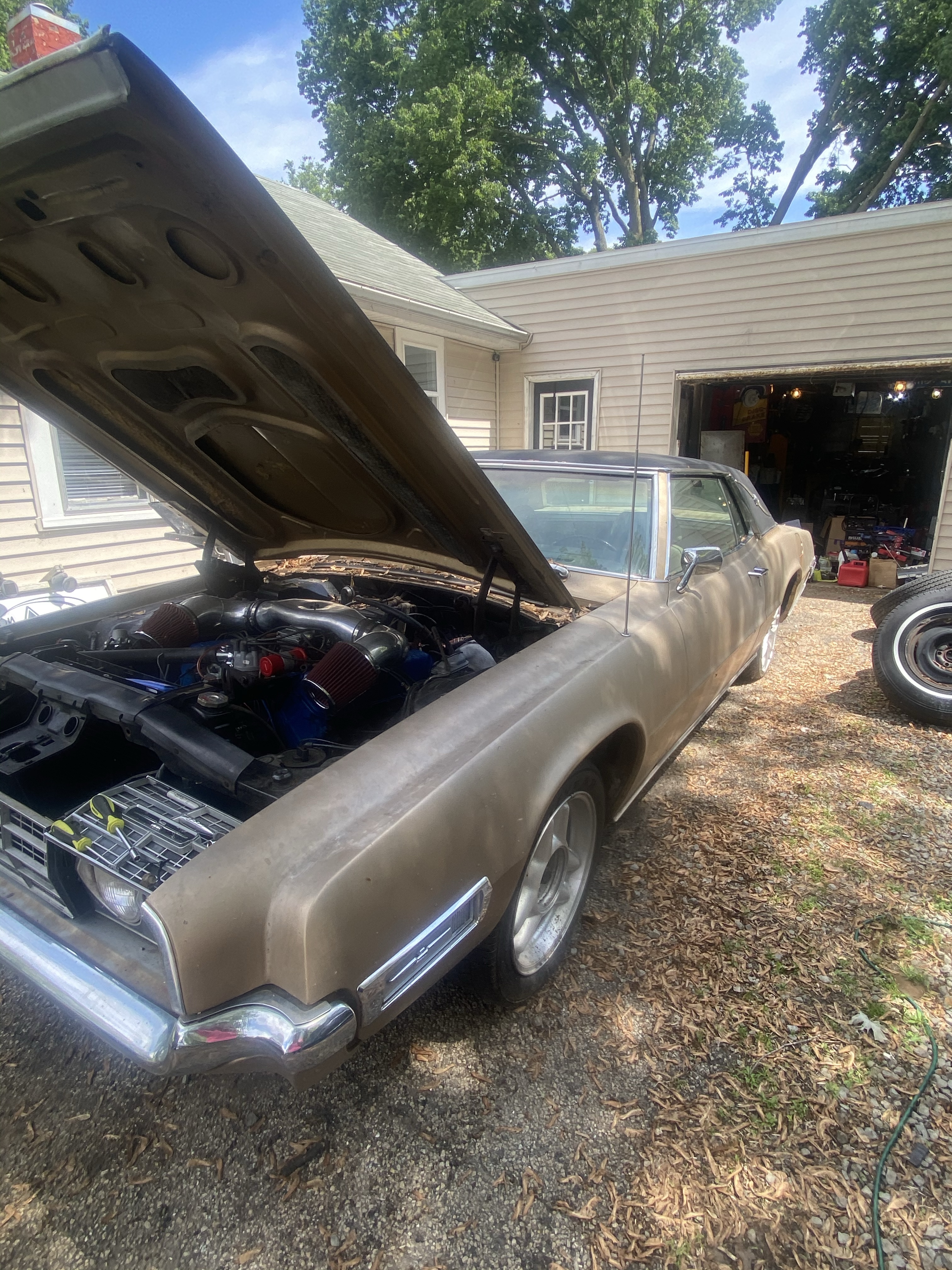 Ugly Betty is a gold 1968 Ford Thunderbird we pulled out of a barn for 800 dollars and plan on turning into the ultimate burnout car. For now she is a stock 429 thunder jet, It has a 9 inch rear end with a locked 3.50 gear. So far it doesn’t have a whole lot done to it but there is much more to come… stay tuned!!!